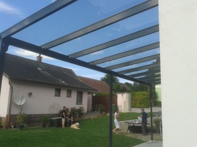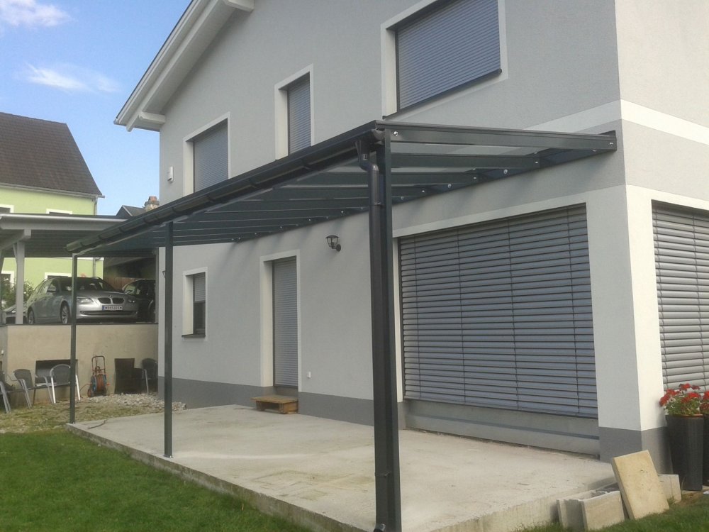 Diese Überdachung ist einfach elegant und mit der Antrazit Farbe passt sich die Konstruktion in den Gesamtoptik vom Haus super an.