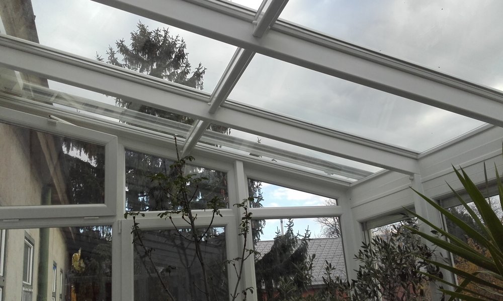 Dieser Wintergarten ist wegen der größe ein Blickfang. Bei der Naturmaßabnahme ist die Frage aufgekommen ob die Terasse den Wintergarten tragen kann.